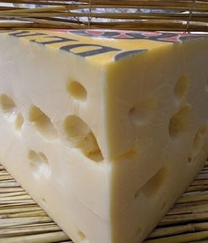 A mild tasting semi soft cow’s milk cheese with holes!!. Originating in Norway and delivered to you by The Crumbly Cheeser, it has a mild nutty, slightly sweet flavour with a buttery texture.